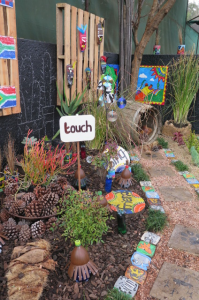 The Smallways team chose to represent the different senses with a variety of carefully chosen plants and flowers that appealed to each particular sense. Our garden became something that was not only to be appreciated visually, but experienced physically through all the senses. A theme that has a strong presence in Smallways Nursery’s teaching and learning. Other themes with strong influences at our school, such as friendship, love and passion, became brightly coloured stepping stones – a huge thanks to Le-Anne for depicting these beautiful and incredibly important values for all to see!